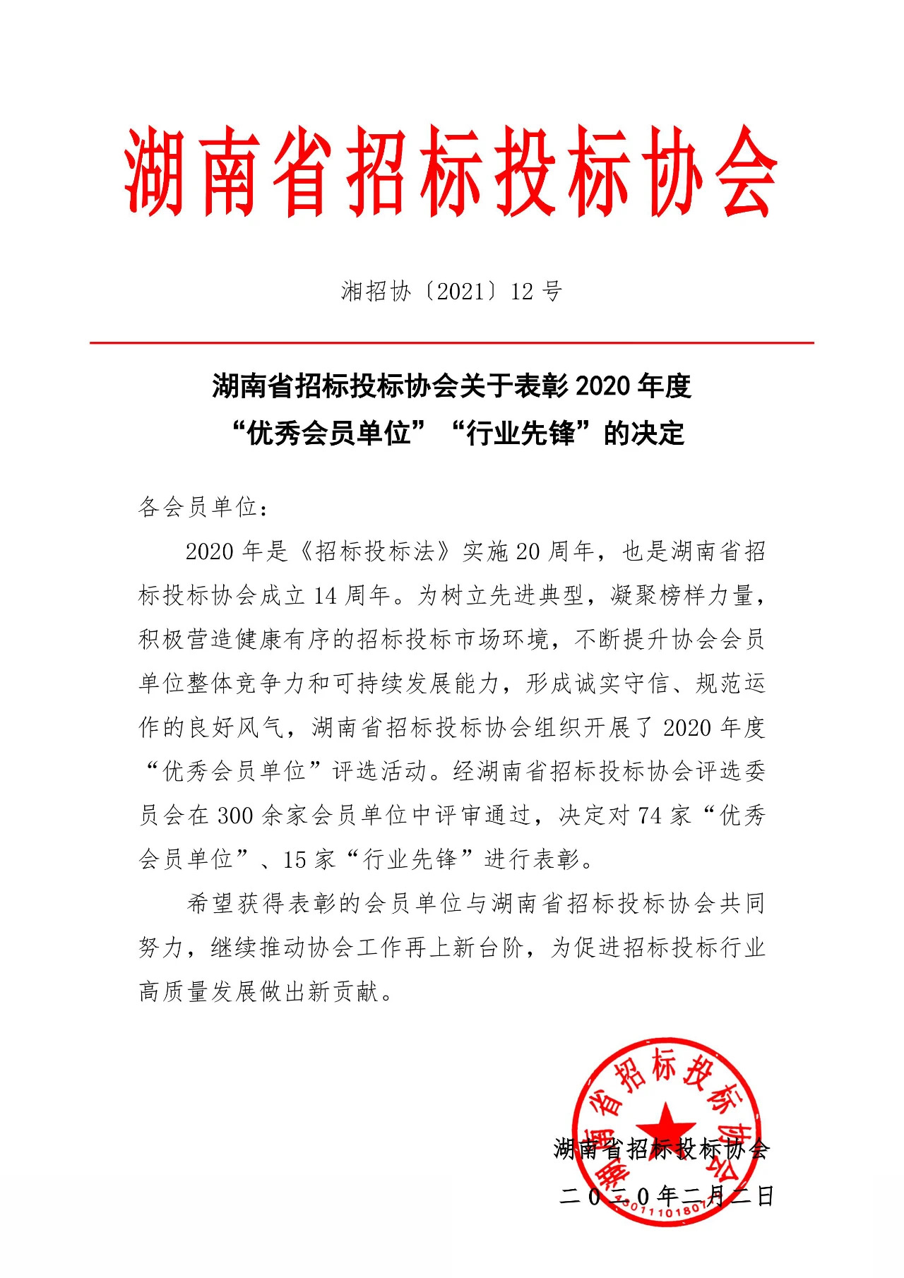 近日,在湖南省招標(biāo)投標(biāo)協(xié)會(huì)組織的表彰通告中,龍騰國(guó)信工程咨詢(xún)有限公司榮獲“2020年度優(yōu)秀會(huì)員單位”。同時(shí),公司李超先生獲協(xié)會(huì)“優(yōu)秀特約聯(lián)絡(luò)員”稱(chēng)號(hào)。